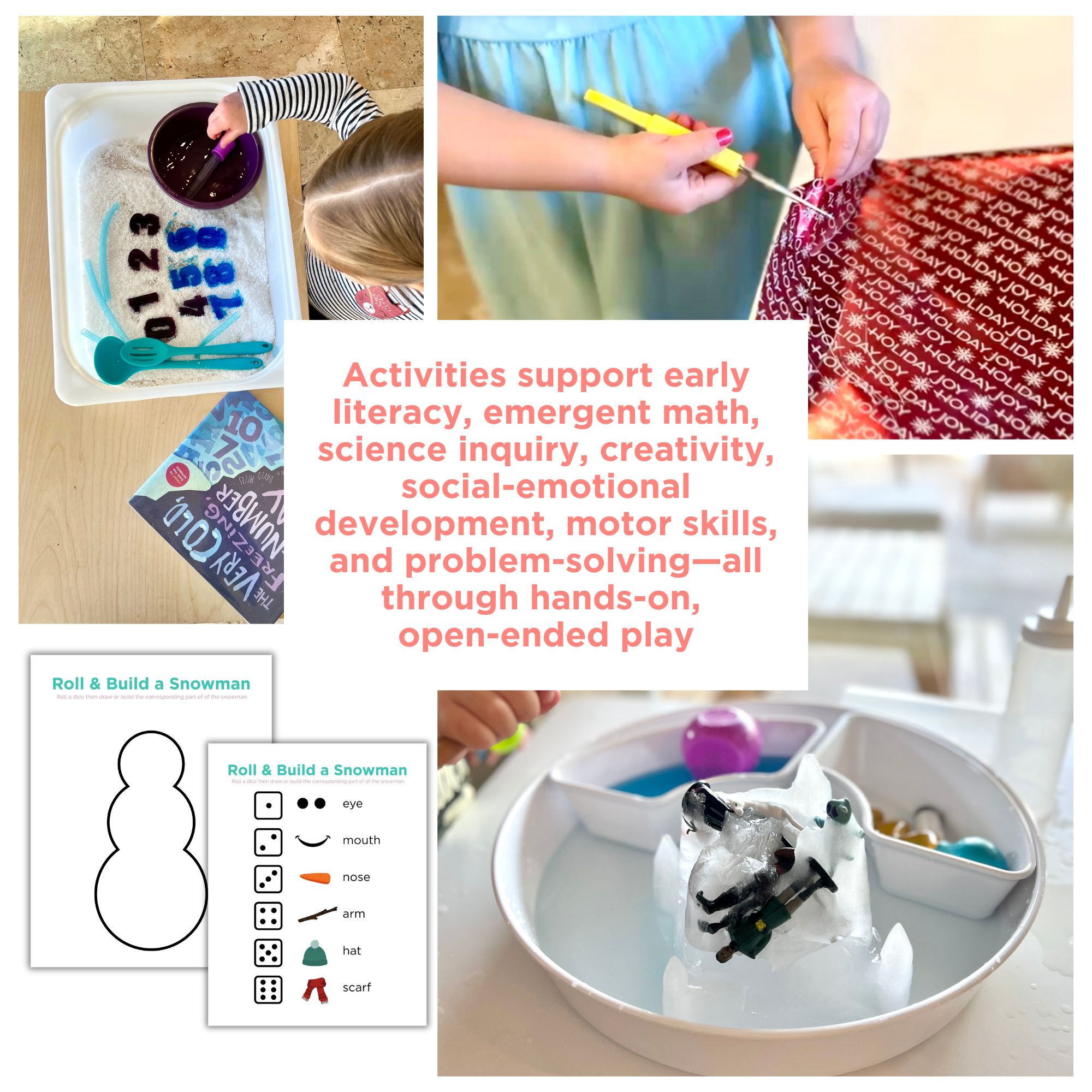 - Roll & Build a Snowman Printable (math + fine motor)